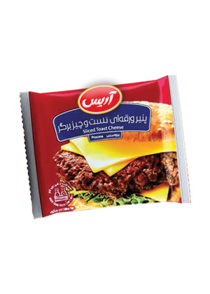 اين نوع پنير از مخلوط پنيرهاي تازه و رسيده همراه با مقادير معين كره حيواني و افزودنيهاي مجاز خوراكي توليد ميشود كه پس از فرآيند استريل شدن در ورقههاي 20 گرمی تحت شرايط استريل بسته بندي ميشوند. پنير « چيز برگر » محصول مغذي و خوشمزه اي است كه دارای خواص تغذيهاي بالايي است و در تهيه انواع ساندويچهاي سرد و گرم به خصوص انواع برگرها كاربرد دارد . به دليل اينكه در توليد اين محصول از دماهاي بالا براي پخت استفاده مي شود زمان ماندگاري، طولاني مدت بوده و به هيچ عنوان از مواد شيميايي نگهدارنده استفاده نمي شود .